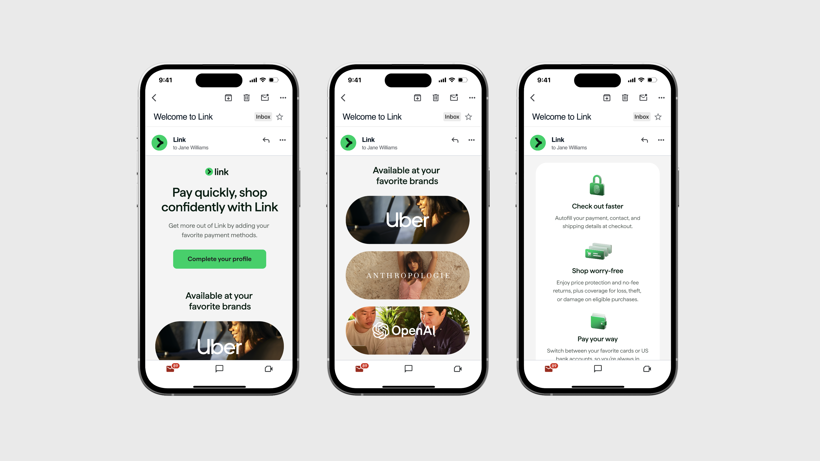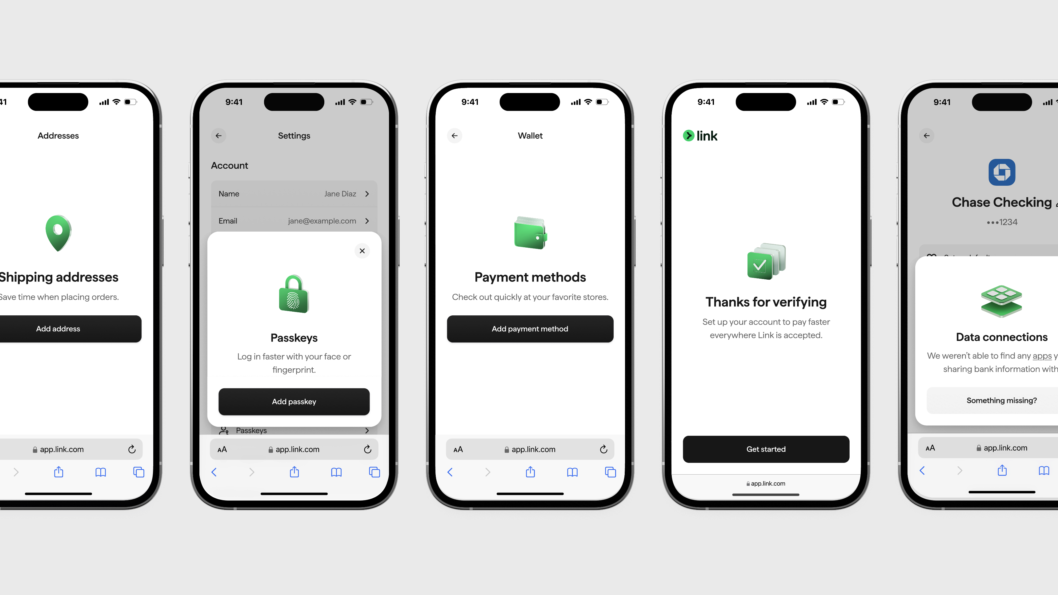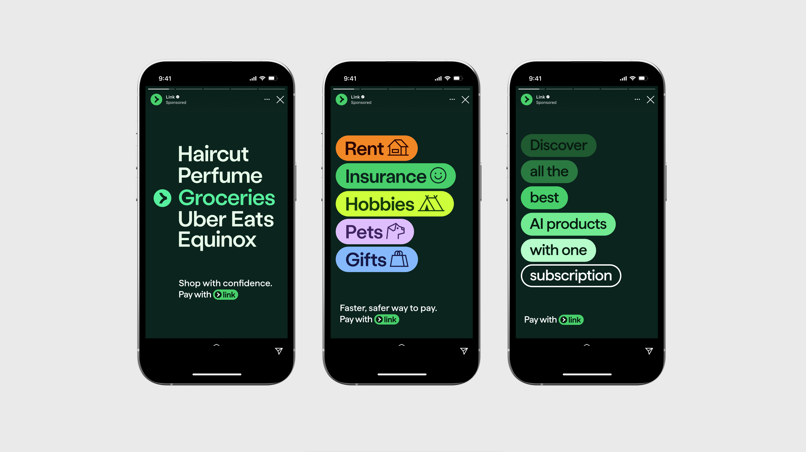 Link—Stripe’s digital wallet for one-click checkout—was reimagined through a flexible system that unites brand and product through a shared visual language. A simple product detail elevated into a clear visual expression, it scales across every surface to create a cohesive and recognizable experience.